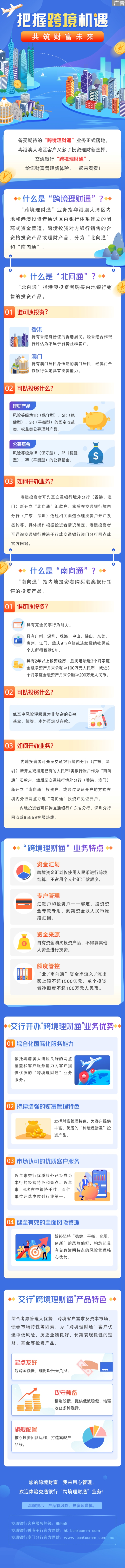 2021年10月18日,根据中国人民银行广州分行、深圳市中心支行、香港金管局、澳门金管局公告,交通银行成为首批获准开办“跨境理财通”业务的商业银行之一。交行广东、深圳、香港、澳门湾区四地分支机构通力协作,现向大湾区居民正式推出“跨境理财通”服务。