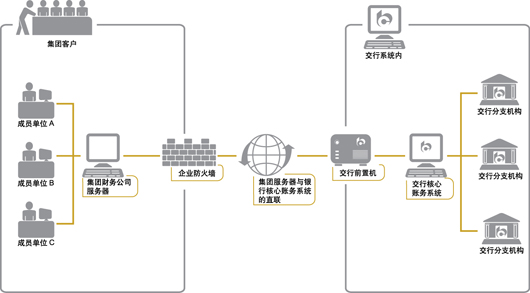 为了最大限度保证不影响财务公司现有资金管理系统的操作流程,减少方案上线的测试时间和磨合周期,可以利用银企直联使财务公司的资金管理系统与银行系统对接,实现业务处理信息的实时传递与更新。