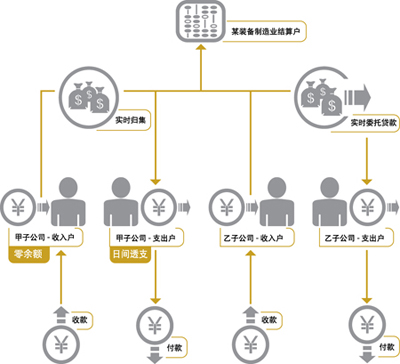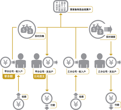 在国际化多元化发展战略的指导下,某装备制造企业规模日益壮大,下设7个职能管理体系。22个生产经营事业部,公司结构趋于复杂-分公司、子公司(控股、参股)。随着市场竞争的日趋激烈,传统的企业财务管理体制、资金运作方式、监管手段等方面的弊端愈加突出。货币资金在不同企业间的“丰”“欠”状况不同:资金充裕型----考虑如何获取更高收益;资金紧缺型----考虑如何降低外部融资成本 在与客户实际合作及对行业整体了解分析的基础之上,交行对于该企业的现金管理具体需求分析如下: ○票据托管、票据融资 ○账户监控—多维账户查询(余额、交易明细、票据查询) ○账户零余额管理 ○账户对外付款限额管理 ○收支两条线 ○资金自动/主动归集 ○自动请款 ○资金集中调度和调剂使用